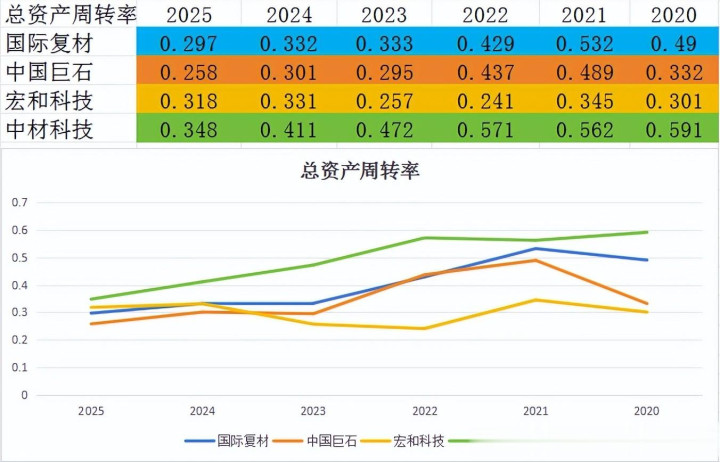 营运才智排活动:中材科技>宏和科技>国际复材>中国巨石。