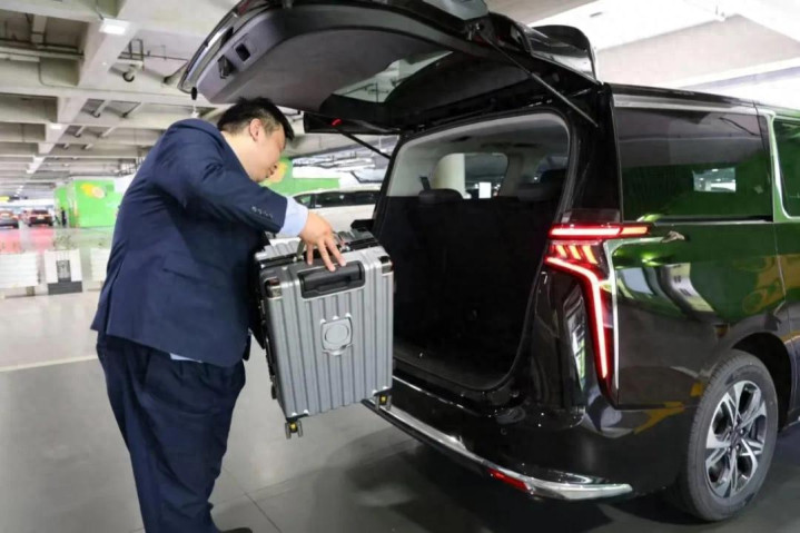 应师父正准备帮乘客放行李
