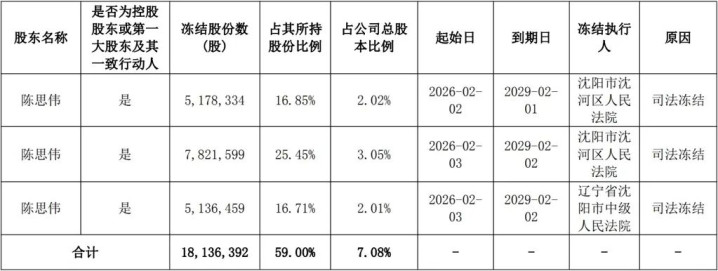 萃华珠宝于2026年2月4日浮现的鼓舞陈想伟所抓股份被冻结情况
