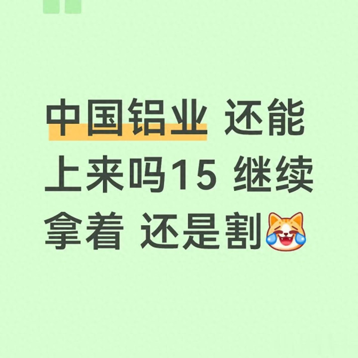 回到开端的问题:“15元资本的中国铝业,是不息拿着,如故割肉离场?”