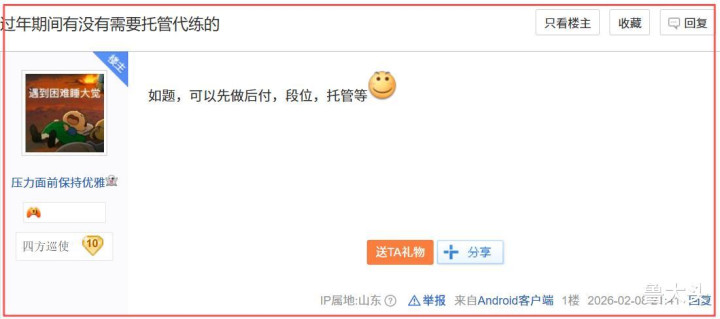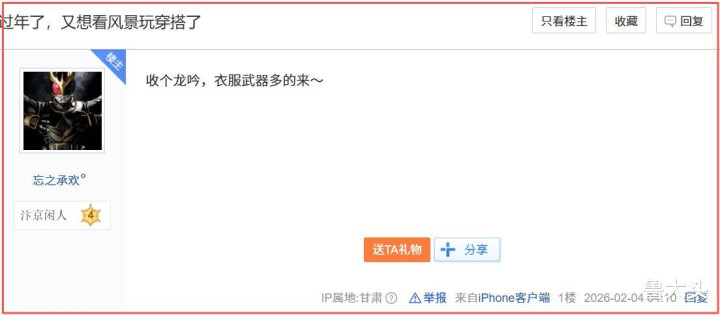 而《逆水寒》黄金服,自身等于现时阛阓最有买卖价值、游戏钞票变现最为粗浅的MMO,莫得之一。普通里玩家玩一个月游戏的收益,可能连春节假期内一两周齐赶不上。在这种情况下,不少东谈骨干脆“云加班”,趁着春节假期的黄金技术,更积极的干预到游戏搬砖收货的行状中,给我方多赚一份收入。