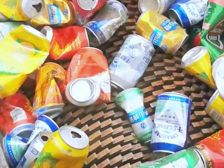 第一步是压缩减容,借助专科成立将海量易拉罐压缩成一吨重的金属块,大幅镌汰运载和存储老本,这亦然入口易拉罐的前置准备。第二步是轮廓分拣,金属块经闹翻机闹翻后,送入AI光学分拣机,红传闻感器分辩混合金属,磁铁吸走钢铁杂质,再通过水洗机去除塑料、玻璃等轻浅杂质,只留住纯洁铝渣。