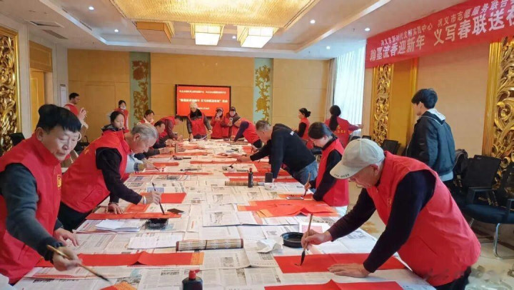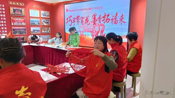 手脚现场墨香与剪纸芬芳交汇,喜庆和蔼。中国书道家协会会员崔建勇,河南省书道家协会会员赵治国、马红、柴志英、张建武、董万通、张五洲、秦坤明、李天海、杨继周、刘建恒、付玉峰及青少年书道喜欢者于家琪、丁宁等14位书道家现场挥毫泼墨,一笔一画尽显功底,一副副寓意祯祥的对子、一张张红火的福字铺满现场,为新春增添浓浓墨香。