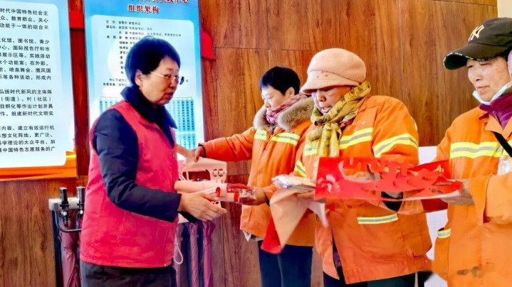 河洛剪纸非遗传承东谈主曹慧贞敦厚指导七位剪纸志愿者,以巧手剪窗花、传年味,将非遗时间与新春道贺融于指尖,让传统文化在小年时节兴隆光彩。市神志健康协会姚慧敏指导十多位小一又友们,用刚直童心拓制“福”字,为环卫工东谈主奉上赤诚问候,开云体育官方网站以童真传递敬意。爱心企业河南嵩山科技有限公司总司理贺平来到现场,为信守一线的环卫工东谈主披发暖贴等暖心物质,用骨子手脚传递企业爱心,请安隆冬信守的就业者。