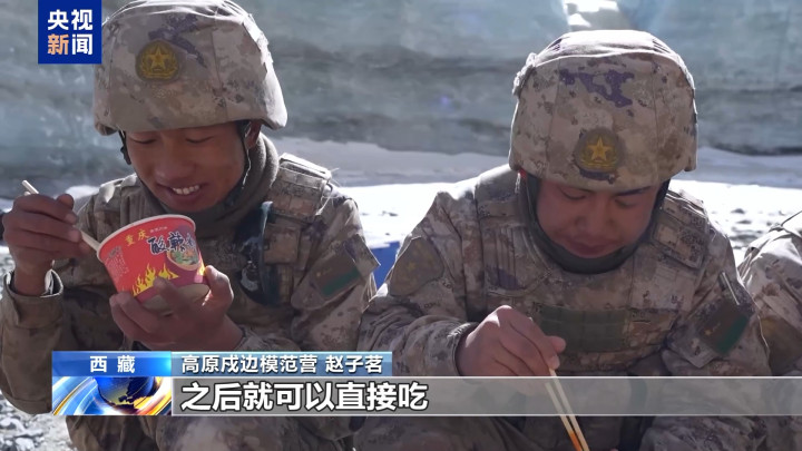 高原戍边尺度营赵子茗:字据每次巡查的环境遴荐,像此次巡查地点,有一面不错挡风的地方,咱们不错用卡式炉,早上炊事班准备了一些肉、菜,提前王人弄熟了,到这边就不错进行加热,之后就不错平直吃。若是在另外的巡查地点,风相比大的地方,咱们吃的便是自热干粮,也会提前卤一些牛肉、鸡腿,跟自热食物一谈加热,加热之后也好像吃到热食。