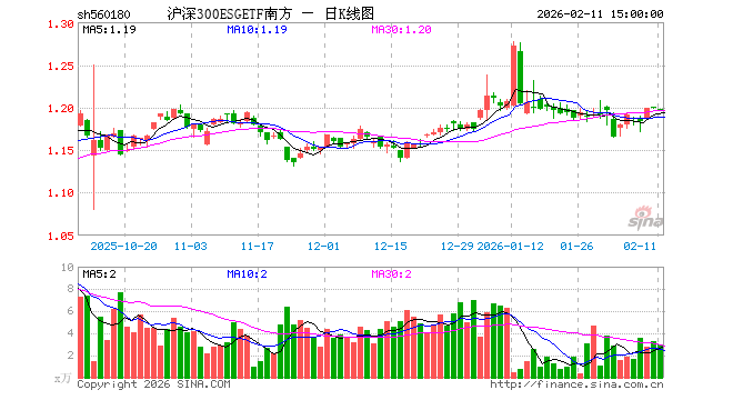 2月11日,沪深300ESGETF南边(560180)跌0.17%,幸运彩成交额353.38万元。当日份额减少250.00万份,最新份额为1310.30万份,近20个往来日份额减少500.00万份。最新钞票净值计较值为1570.00万元。