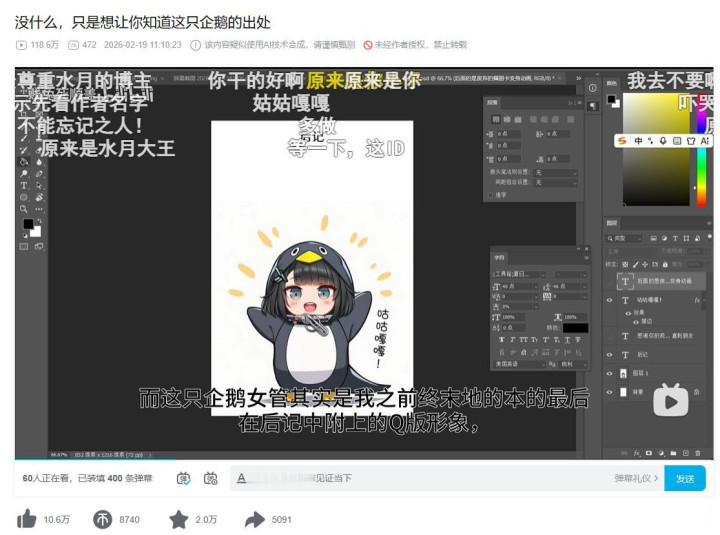 于是企鹅处理员、AI视频、二创图片初始在B站豪恣传播。