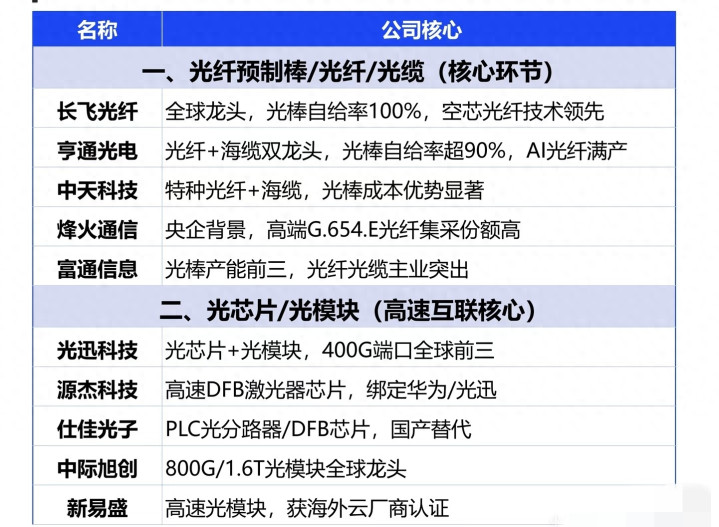 - 光芯片:是光模块的“腹黑”,决定了传输的速率和距离。高速光芯片(如400G、800G、1.6T)是AI数据中心的刚需,亦然我国要点冲破的“卡脖子”规模。