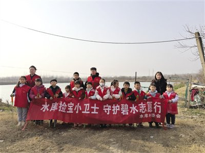2月10日下昼,合肥市庐阳区大杨镇水库村村委会联袂团委、妇联、工会、文化、关工委、社会事务等多部门在水库边开展环保小卫士志愿活动。